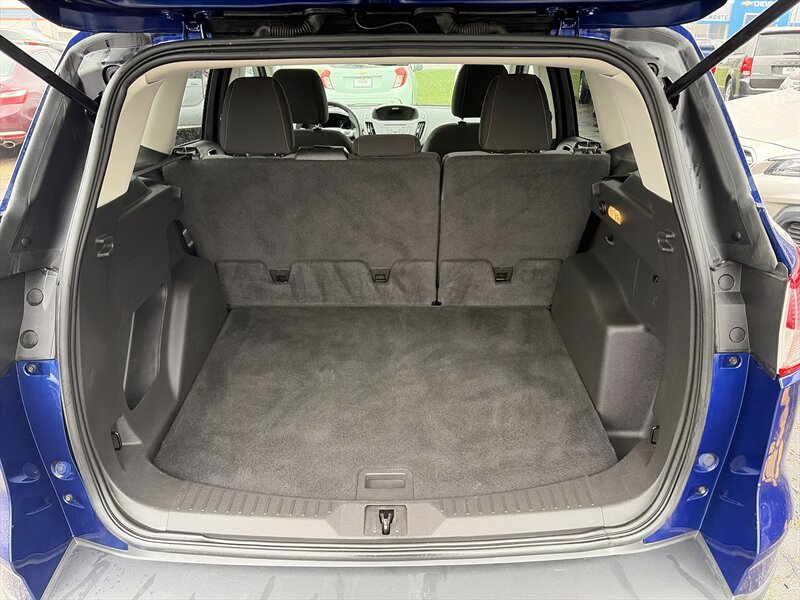 - Deep Impact Blue Metallic paint provides a rich, deep finish that highlights the Escape’s sculpted hood and prominent shoulder lines. The SE trim typically wears 17-inch alloy wheels that complement the vehicle’s proportions and provide a good balance between ride comfort and handling responsiveness.