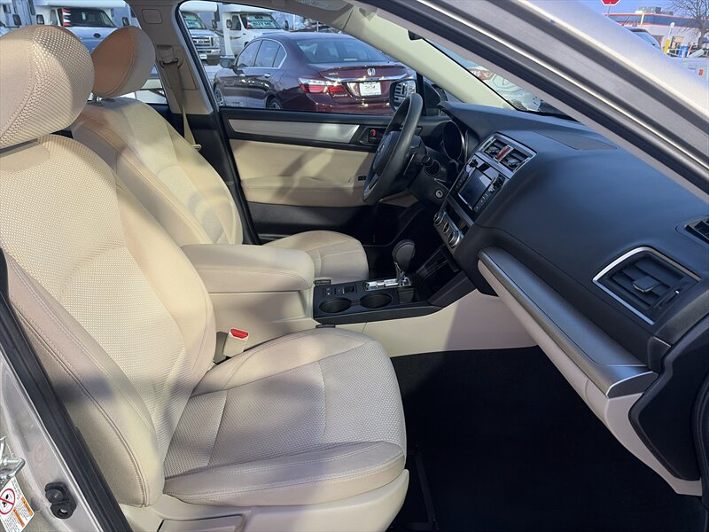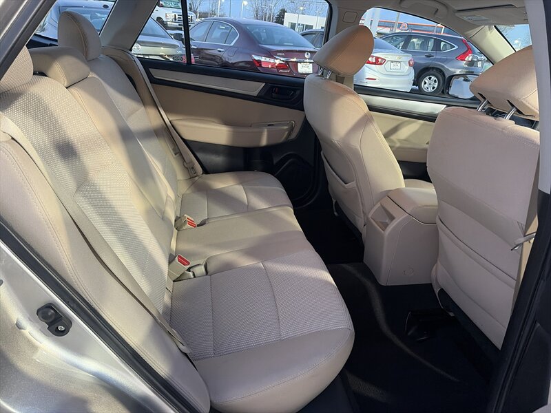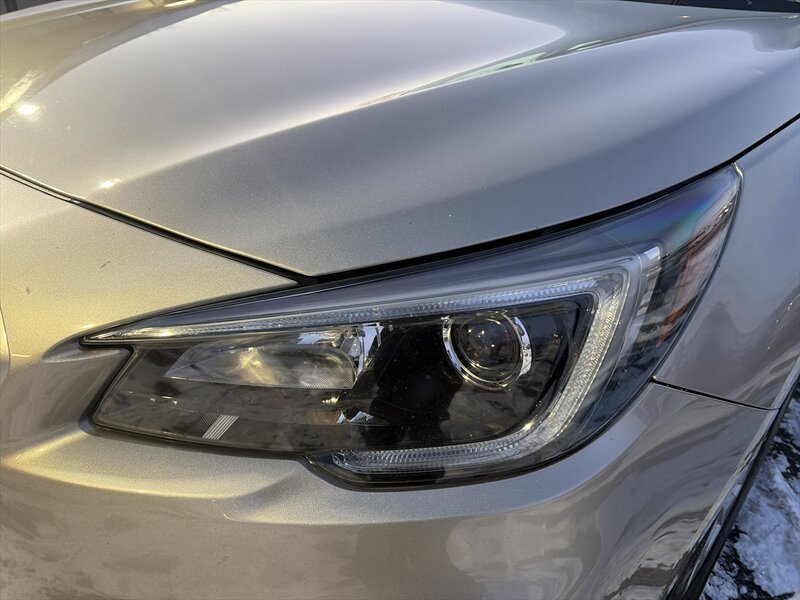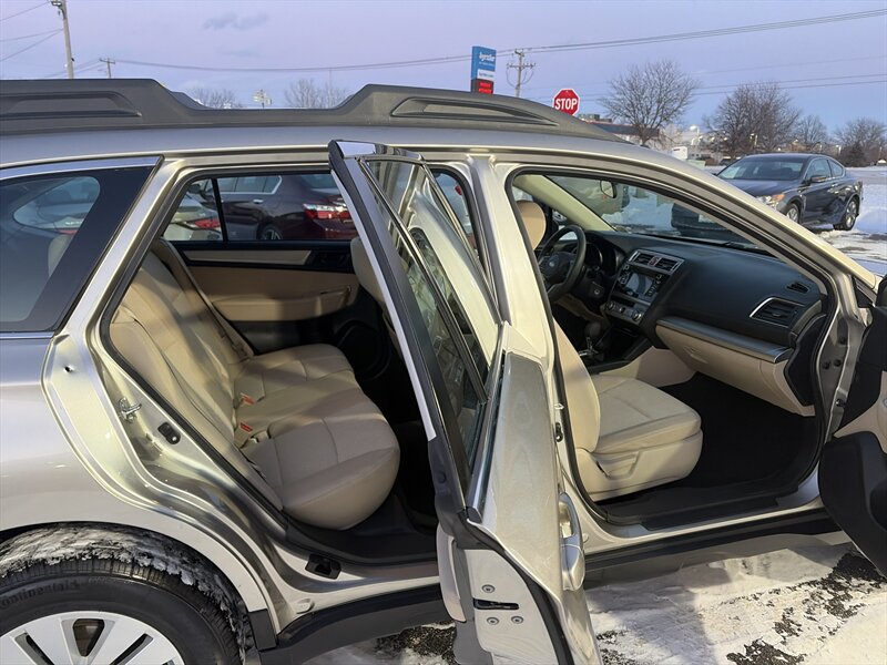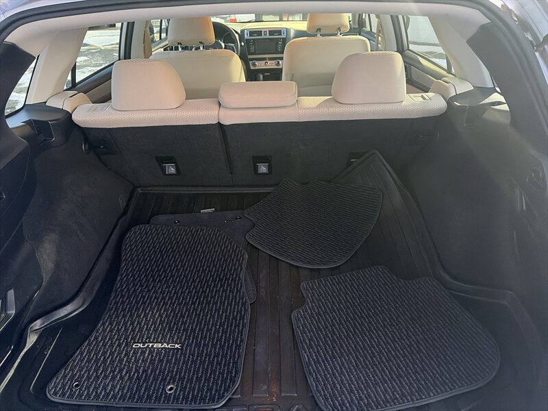 This example comes finished in Tungsten Metallic, a restrained, premium gray that complements the Outback’s rugged crossover styling. The factory exterior package includes roof rails with integrated cross bars for mounting cargo boxes, bikes or other gear; high ground clearance that supports light trail use and improved visibility in traffic; and a sculpted body with protective lower cladding to help guard against road debris. Factory headlamps and taillights are designed for durability and clear nighttime illumination. The vehicle shows an excellent overall exterior condition, with no notable defects detracting from the presentation.